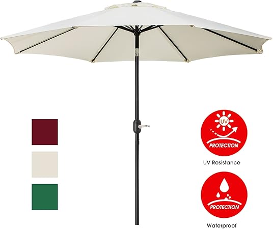 9 Ft Outdoor Umbrella Patio Backyard Deck Table Sturdy Pole 8 Ribs