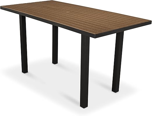 Black Aluminum Patio Table With Natural Plastic Teak Slats