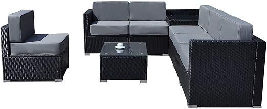 Mcombo Outdoor Patio Black Wicker Furniture Sectional Set All