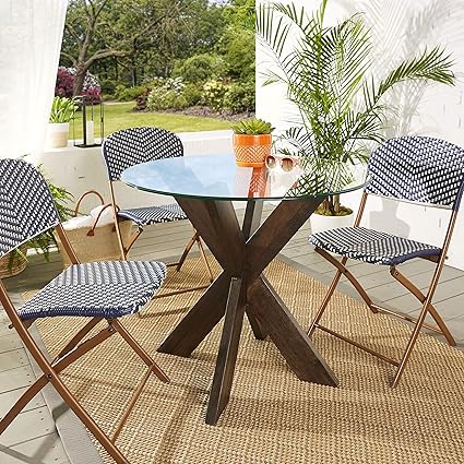 Garden Table Round Glass Top Folding Outdoor Patio Decoration